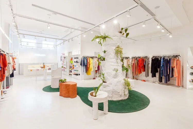 Junto à arquiteta Bruna Sperling e à diretora de arte Giulia Barbero, desenvolvi os projetos arquitetônicos dos espaços físicos da Ahlma no Rio de Janeiro e em São Paulo. Para cada ambiente, criamos instalações artísticas que convidam à reflexão sobre o impacto da moda, unindo arquitetura, arte e consciência sustentável.